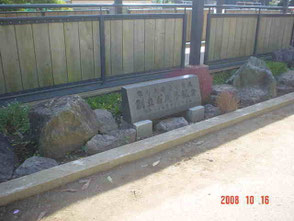 百周年記念碑が体育館へ行く通路のわきにあります。