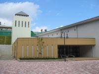 平成25年に完成した体育館は校庭の下にあり,校舎からは長い階段やエレベーターを使って行き来します。
